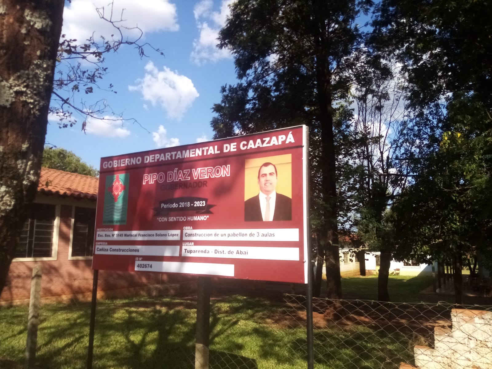 La Gobernación de Caazapá administración del Abg. Pedro Alejandro Díaz Verón ejecuta obras en varios distritos del departamento principalmente para dotar de infraestructura al área de educación.