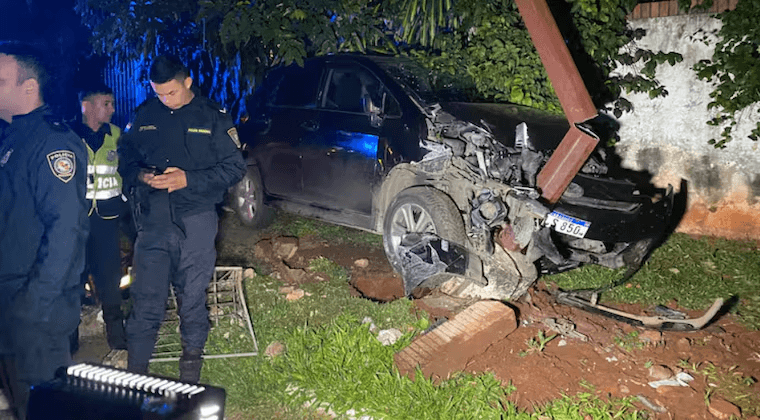 En medio de esa pelea, el chofer perdió el control del volante y chocó contra una columna de la ANDE que terminó partida a la mitad además de destrozar el rodado.