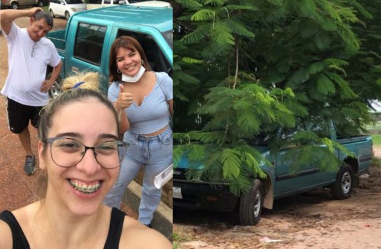 Sin embargo, la mañana del domingo, su prima salió y decidió continuar su rastreo desde el punto en el cual se quedaron la noche anterior. “Después de unas vueltas por la zona ve un brillo verde de lejos y se acerca y era la camioneta abandonada, debajo de un árbol en un empedrado hacia Ñu Guazú”, celebró.
