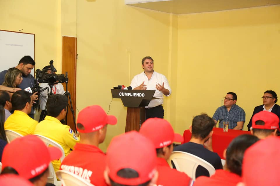Este jueves el Intendente de Coronel Oviedo Marcos Benítez realizó la transferencia de recursos a las dos compañías de Bomberos.