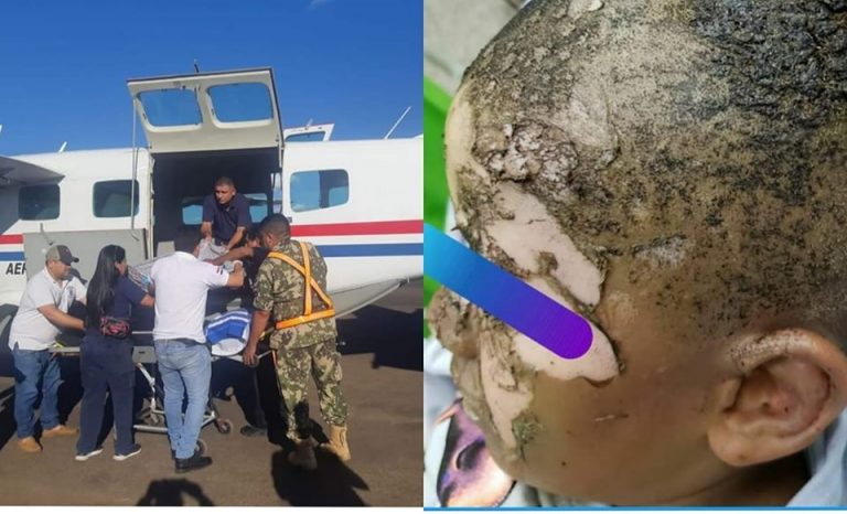 El menor fue trasladado por un avión de la Fuerza Aérea Paraguaya y personal del SEME, desde el interior del país hasta el CENQUER según los datos.