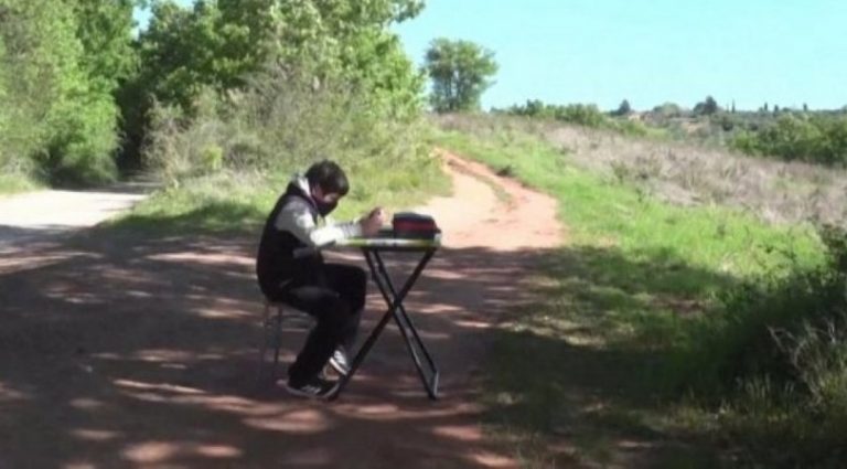 Una madre fotografió lo que tienen que hacer junto a su hijo para poder encontrar señal al vivir en una zona rural de Italia. Todos los días viaja kilómetros con él en su camioneta para llegar a una colina donde instalaron una pequeña mesa y una silla y donde el menor de 12 años puede conectarse a sus clases mediante su tablet.