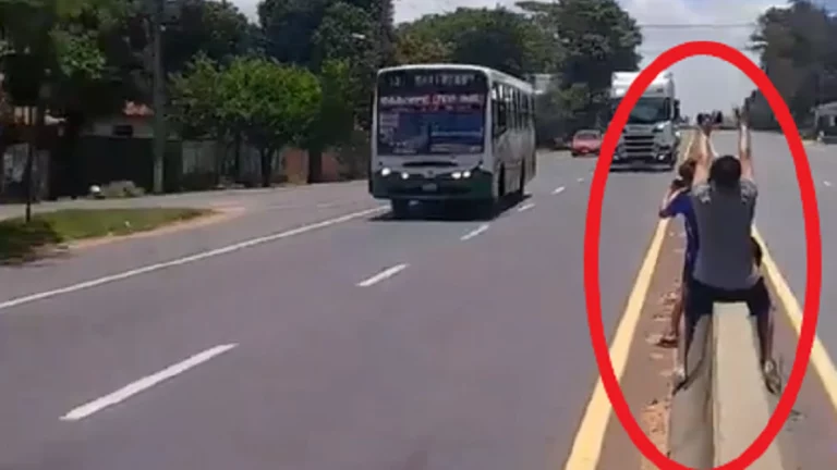 El hecho habría ocurrido sobre la ruta PY02 entre las zonas de Capiatá e Itauguá y muestra a un niño y dos adolescentes sentados peligrosamente sobre el muro que divide a ambos carriles, filmando el paso de camiones de gran porte.