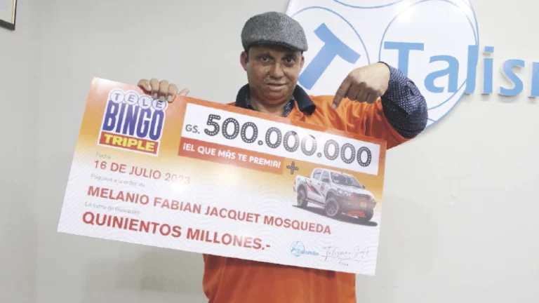 Sacó el pozo de G. 500 millones en la primera cantada. Capataz suertudo invertirá en su casa y en sus dos hijos pequeñosDon Melanio Jacquet (35) hasta ahora no puede creer que es el nuevo ganador del pozo de Telebingo Triple. Sacó G. 500 millones más una camioneta Hilux 4×4 en la primera cantada.