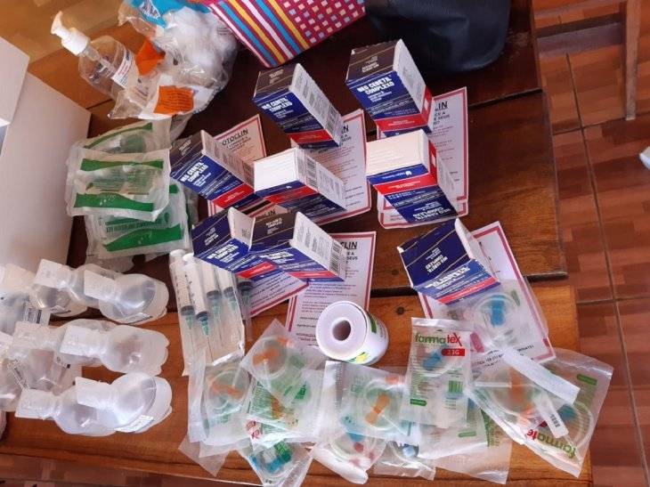En poder de ellas encontraron registros sanitarios, guardapolvos de dos universidades, 27 vías intravenosas, 10 equipos para suero, los sueros fisiológicos, guantes, 10 jeringas, 8 cajas de medicamentos y otros insumos médicos, según informó Última Hora.