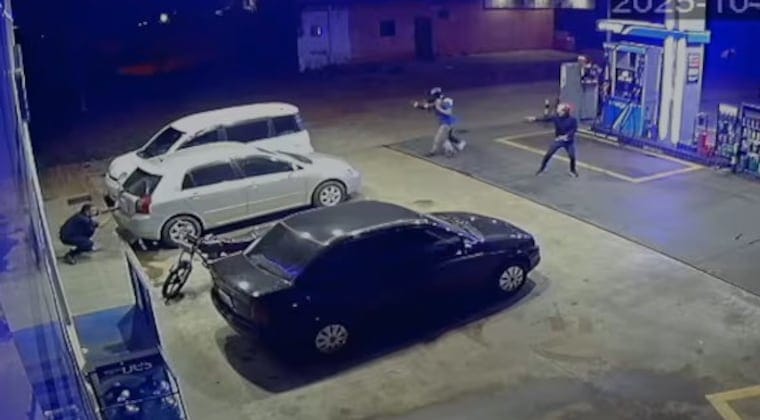 Coincidentemente, se encontraba en el lugar el suboficial ayudante Miguel Servín, quien decidió enfrentarse a los asaltantes para tratar de evitar el atraco. En ese momento, se produjo un intercambio de disparosEl efectivo policial decidió esconderse detrás de algunos vehículos durante el tiroteo, desde donde respondió efectuando más disparos. Al ver frustrados sus planes, los criminales decidieron huir del surtidor.