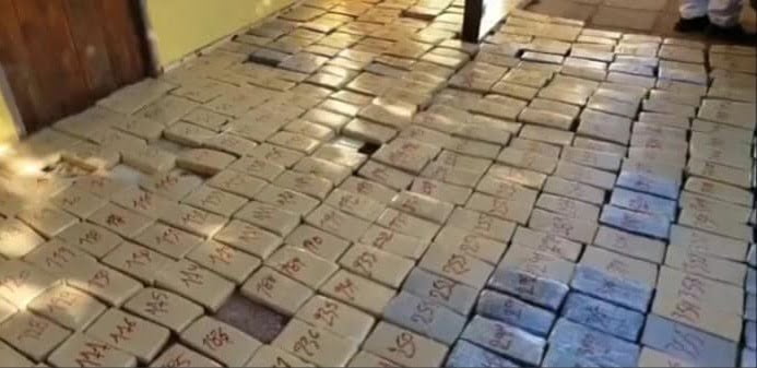 Agentes policiales procedieron a la incautación de 397 panes de marihuana prensada distribuidos en 17 bolsas totalizando 455 kg.