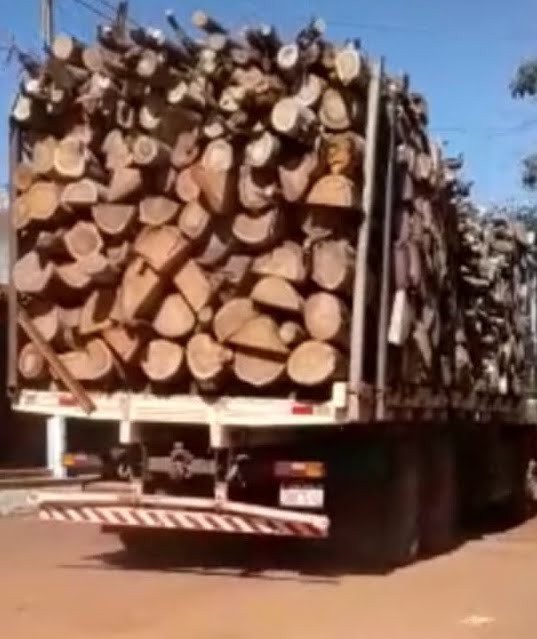 Un internauta de la zona, preocupado por la situación, captó las secuencias fotográficas de un camión Scania 113 H, que transportaba un enorme cargamento tipo rollitos de los eucaliptos talados en el lugar.