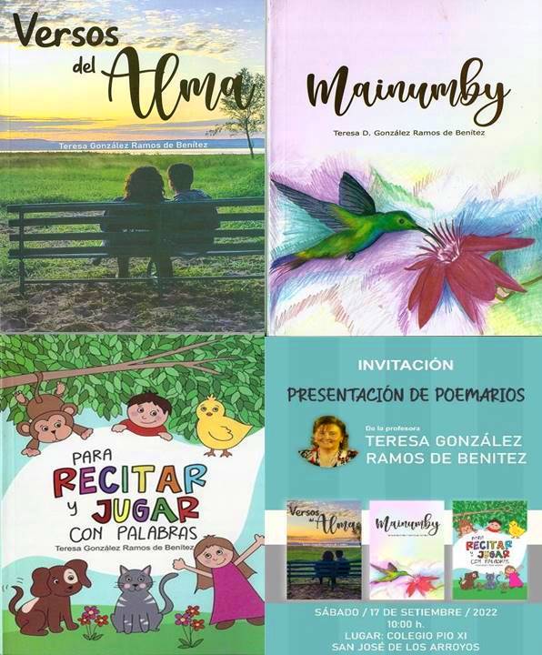 SAN JOSÉ DE LOS ARROYOS, Dpto. Caaguazú.- El sábado 17 de setiembre en horas de la mañana, se realizó la presentación de tres poemarios de la profesora Teresa González Ramos de Benítez, durante un emotivo acto cultural desarrollado en el local del Colegio Parroquial Pío XI de esta ciudad. La autora fue alumna de la institución, posteriormente docente y coordinadora de grado en el establecimiento educativo, en época del renombrado sacerdote Heriberto Vázquez.