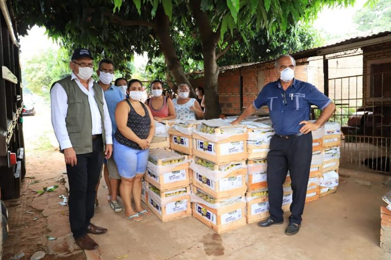 El Ministerio de Agricultura y Ganadería en forma conjunta con productores de banana del distrito de Tembiaporã entregaron 500 cajas de banana a varios asentamientos ,comedor comunitario de la parroquia San Antonio de Padua , comunidad indígena Cerro Guy de Lambare, Bañado Norte , Sur y periferias de Asunción .