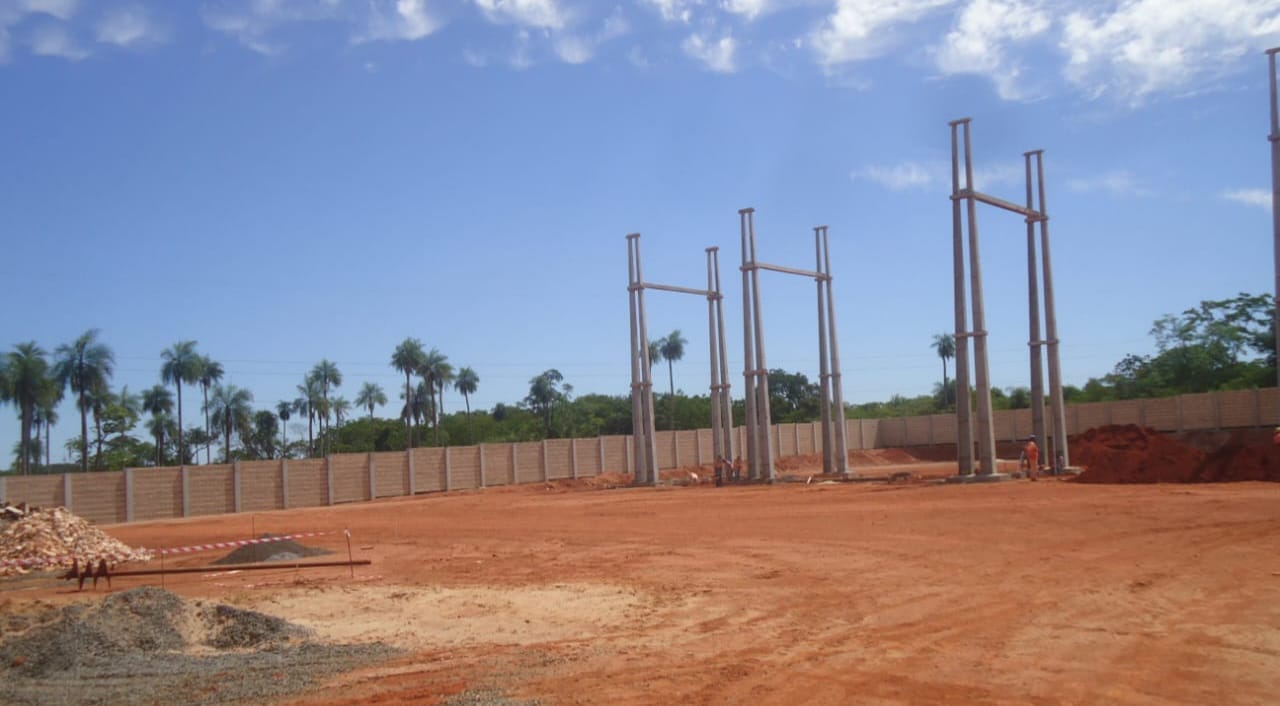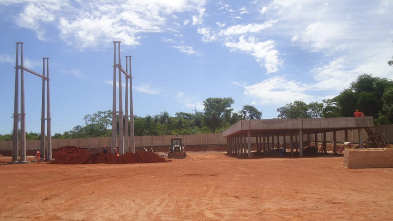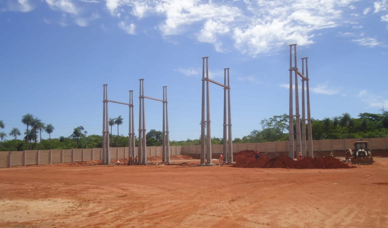 En la obra que está controlada por el Ing. César Lovera, en carácter de residente, manifestó que unas 40 personas realizan los trabajos a diarios, de los cuales un 25 por ciento son locales. Los trabajos ejecutados en la actualidad son las estructuras de los pórticos, erección de las columnas, casa control, trabajo perimetral las murallas de una dimensión aproximada 110 mtrs x 110 mtrs.