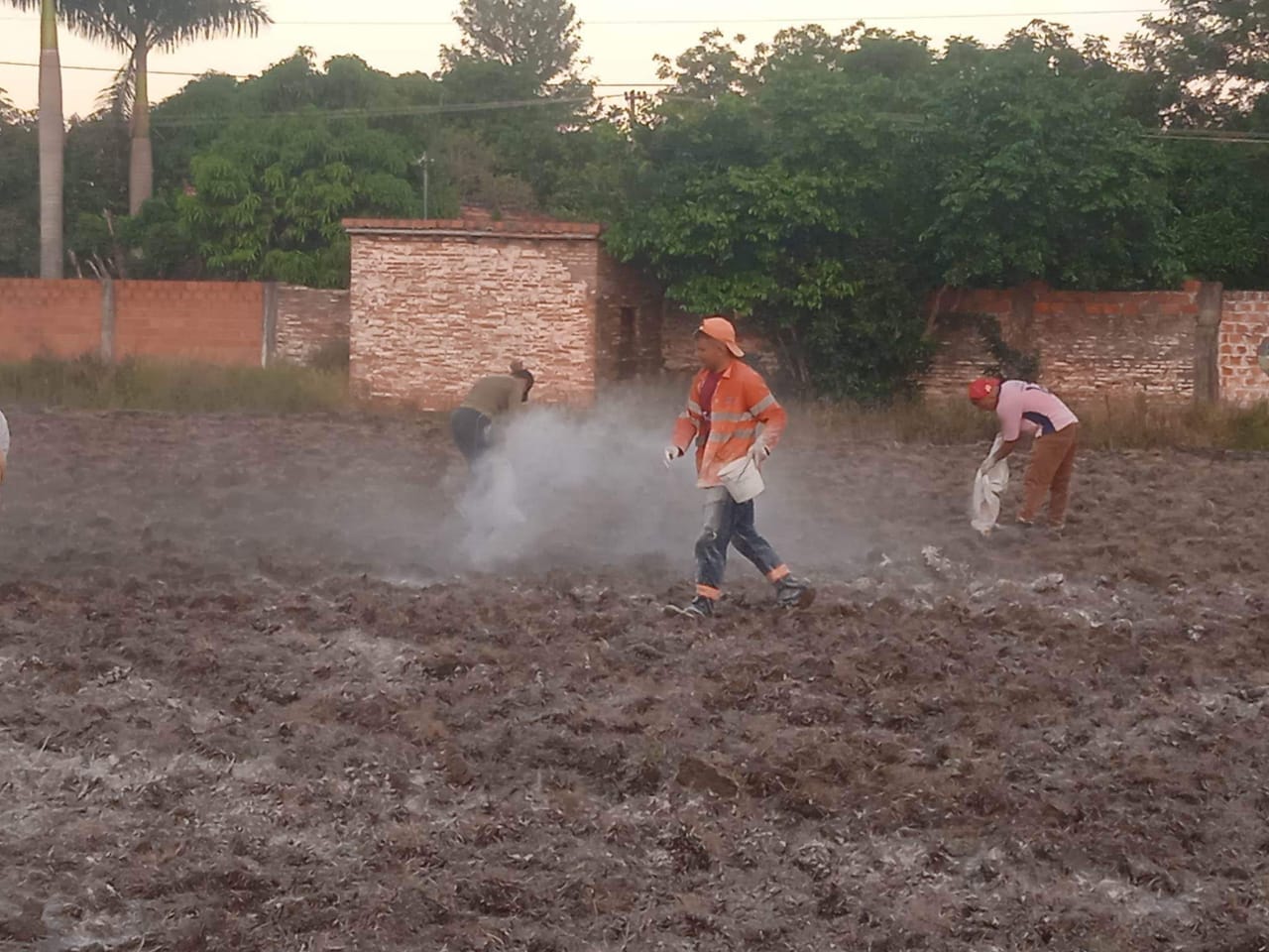 El trabajo de encalado se realiza actualmente, utilizando para el efecto un total de 2 mil kilos de cal, a los efectos de corregir la acides del suelo para mejorar la higrogenización o (ph).