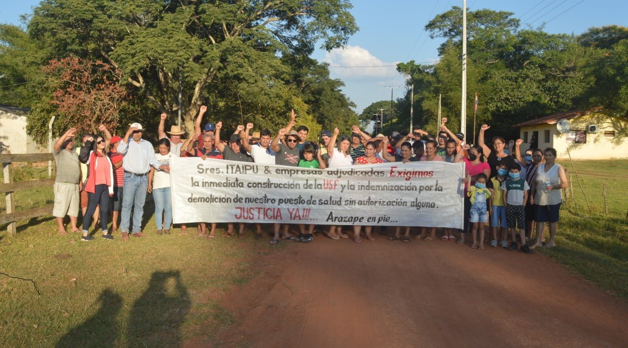 SAN JOSÉ DE LOS ARROYOS, Dpto. Caaguazú.- El fin de semana último, por la demora excesiva en construir el nuevo local para la Unidad Salud Familiar (USF)  por parte la Itaipu Binacional  en la compañía Arazapé Cristo Rey del distrito de San José de los Arroyos. Lugareños realizaron una manifestación frente al lugar donde contaron hasta febrero del año 2021 de un hermoso puesto sanitario, y  Derribada en plena pandemia, por personales la construcción al servicio del ente. La ejecución la obra fue encabezada por  hijos de la familia Núñez Agüero y numerosos lugareños quienes aportaron ripios, ,maderamen, tejas y tejuelones,  dinero en efectivo. La  inauguración y habilitación oficial se realizó  durante los primeros meses del gobierno Dr. Nicanor Duarte Frutos.