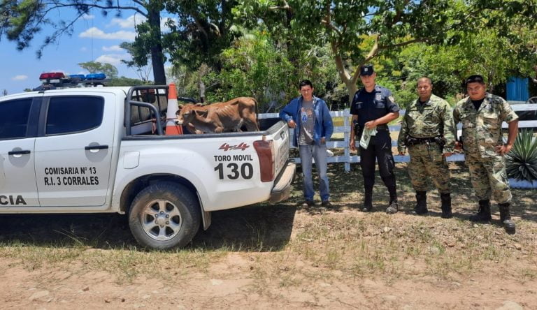 La Policía Nacional en un operativo logró recuperar dos animales vacunos que habrían sido robado aparentemente por abigeos en la Calle 21 Pfanel del distrito de R.I 3 Corrales este jueves a las 08: 00 hs.
