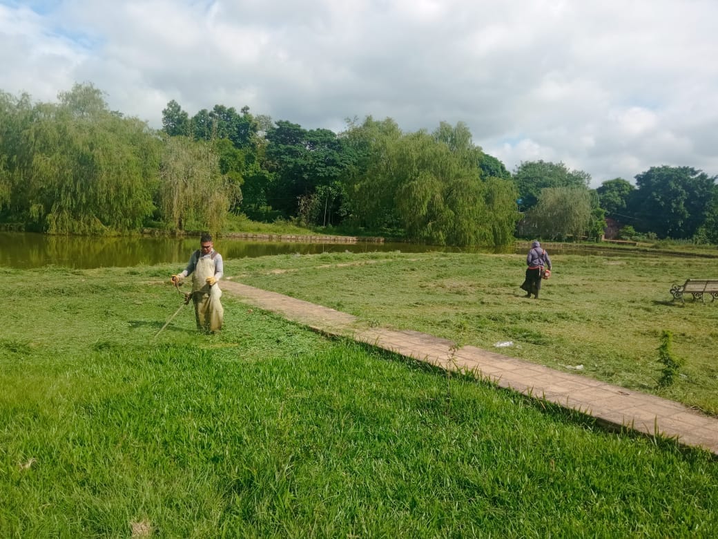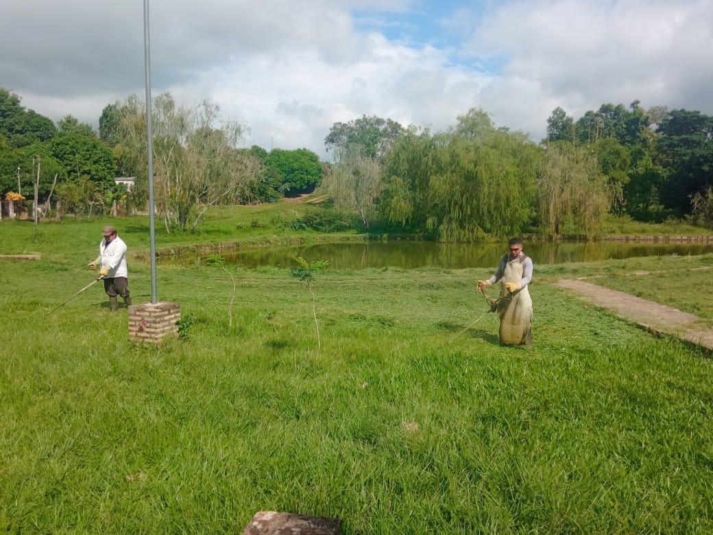 Limpieza y corte de pasto por cuadrilla de la Intendencia Municipal