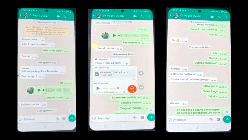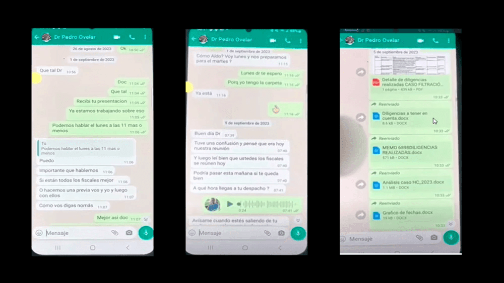Se trata de intercambios de mensajes a través de WhatsApp entre Pedro Ovelar y el fiscal Aldo Cantero en diferentes fechas, a partir del 21 de agosto pasado, donde se van detallando instrucciones para llevar adelante el proceso contra los ex funcionarios de la administración anterior del Poder Ejecutivo.