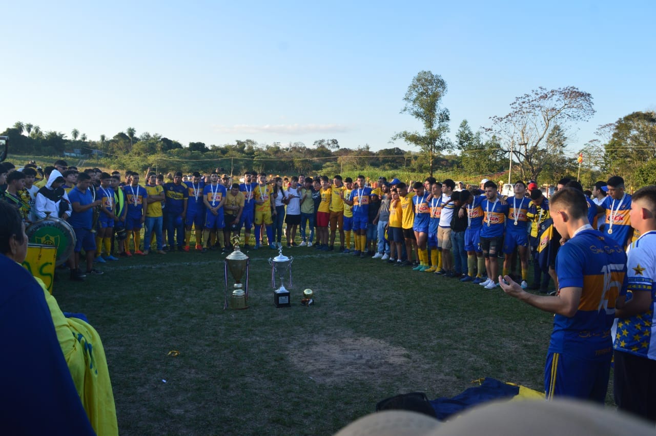 SAN JOSÉ DE LOS ARROYOS.- El plantel auriazul del Sportivo San José, bajo la dirección técnica del profesor Gustavo González, con acompañamiento técnico de Carlos Cañete y Armodio Ojeda, con el frondoso plantel jugadores, se consagró flamante campeón del presente torneo futbolístico, que ayer llegó a su culminación con otra victoria de visitante por la cuenta de 1 gol contra 0, ante su similar del 20 de Julio de San Luis Mboity. Cuerpo directivo y la gran familia del plantel auriazul de esta manera, después de 11 años de su última consagración, vuelven a festejar el título campeón del presente torneo de fútbol sanjosiano organizado por la Liga Sanjosiana de Deportes (LSD). La rica e histórica vitrina ocupa un lugar la Copa Erico Irala Galeano de la presente temporada, al alzarse con tan preciado título. El excelente volante central Derlis David León Núñez, fue su capitán en esta temporada, uno de los grandes semilleros de la casa, indicaron los directivos y la gran hinchada de este laureado club deportivo.