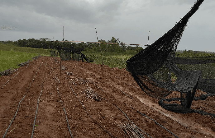 Cultivos de hortalizas que estaban en etapa de siembra para el invierno quedaron destruidos tras el fuerte temporal que azotó a la zona de Coronel Oviedo, Departamento de Caaguazú.