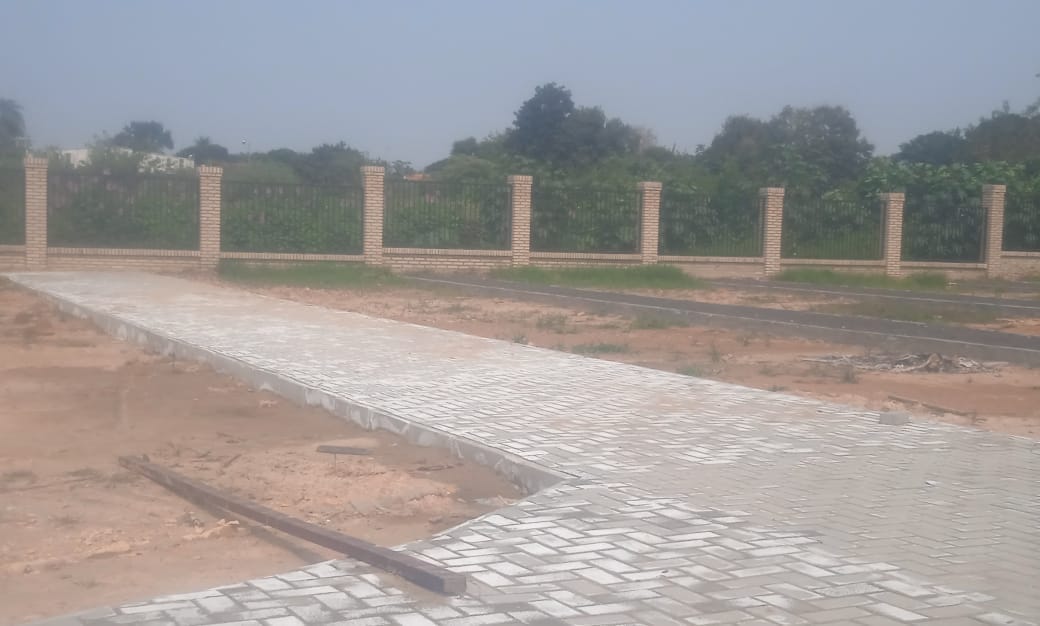 Los trabajos emprendidos, son mejoramientos de suelo con cargamentos, nivelación del terreno, construcción de pilares hormigonado con mamposterías de ladrillos vistos en la parte perimetral, con rejas de metal, canales fluviales perimetrales con cielo abierto.
