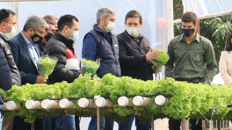 El Presidente de la República, Mario Abdo Benítez, en compañía del Ministro de Agricultura y Ganadería, Rodolfo Friedmann y otras autoridades nacionales y departamentales, realizaron , un recorrido por las unidades de producción frutihortícola, instaladas en la ciudad de Villarrica, en el Departamento de Guairá.