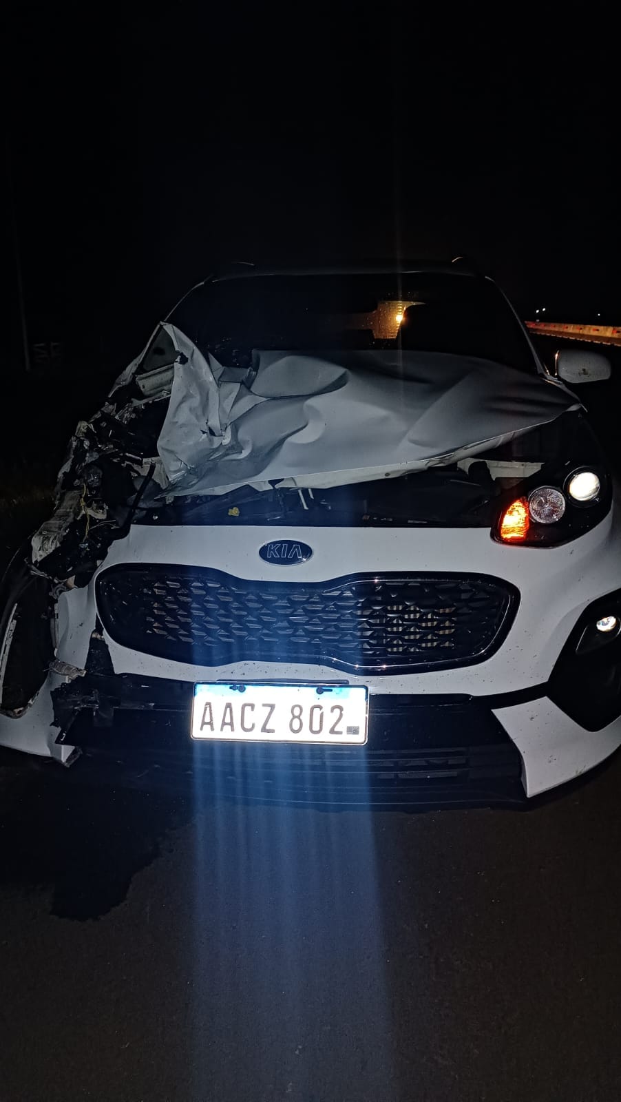 Los agentes policiales de la Comisaría 10ma, tuvieron conocimiento del hecho a través de una llamada vía celular a la oficina de guardia por parte de una persona, por lo que inmediatamente se constituyeron en el lugar del percance, lugar donde pudieron visualizar que el animal vacuno de raza hibrida de color rojizo con marca ilegible se encontraba tendido, y a unos metros más el automóvil Toyota con daños materiales, que circulaba con dirección de Este a Oeste. En tanto la camioneta Kia Sportage también con daños materiales, cuyo conductor manifestó que circulaba en la misma dirección que el automóvil Toyota y al alcanzar el mencionado tramo embistió al animal que le salió de forma repentina, quedando con ciertos desperfectos mecánicos su rodado.
